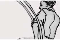 In einem zweiten gläsernen Käfig gegenüber dem Laufband-Autisten