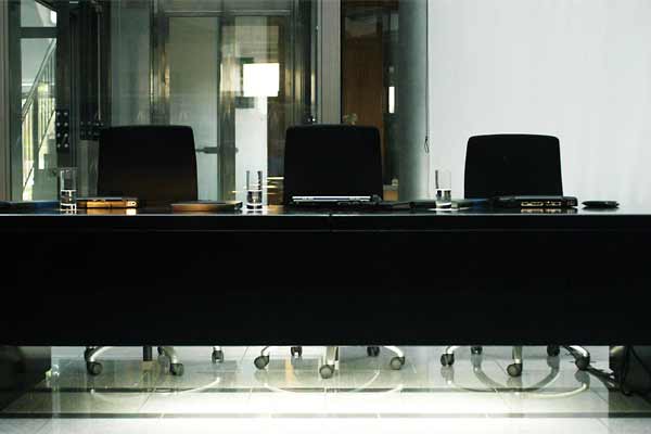 der Blick der Zuschauer, vorbei an viel kühlem Metall und nüchternem