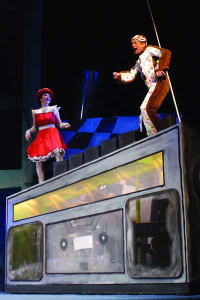 »(...) Vor einem quietschfidelen Haufen gespannter Kinder hebt sich der Vorhang und gibt den Blick auf eine überdimensionale Küchenlandschaft frei. Rechts ein Radiorekorder, der die Livemusiker birgt, links eine riesige Uhr, in der der Herr von Kuckuck wohnt. Ein Schweizer, versteht sich, dessen Aufgabe es ist,weithin hörbar anzuzeigen,welche Stunde es geschlagen hat. Doch ach, er ist heiser.Nordwest Zeitung; 28.11.2004