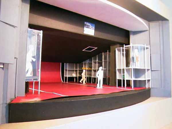 erhöhten Glaskäfig am Bühnenrand, wenn die ersten Zuschauer das