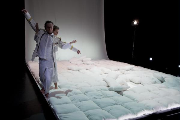 Nach dem sinnierenden Prolog auf dem Balkon springt das Duo beherzt ins XXL-Kissenlager,